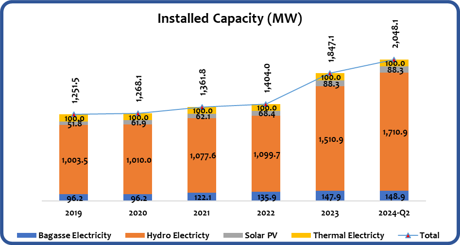 STATISTICS OF INSTALLED ELECTRICITY CAPACITY IN MW (Megawatt) IN UGANDA